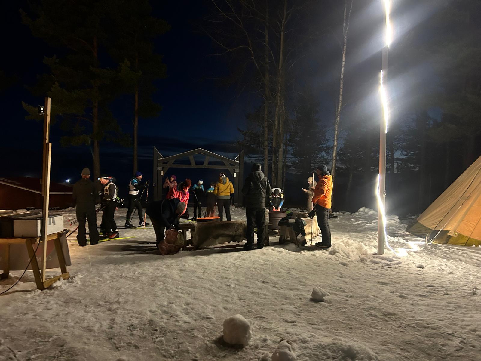 Nach 110 Kilometern beginnt der Geist, eigene Wege zu gehen. Die ersten aus meiner Anfangsgruppe wieder eingeholt. Schnell Ski nachwachsen, eine Suppe mit Kartoffeln und noch irgendwas in den Körper gehauen. Und weiter geht es.